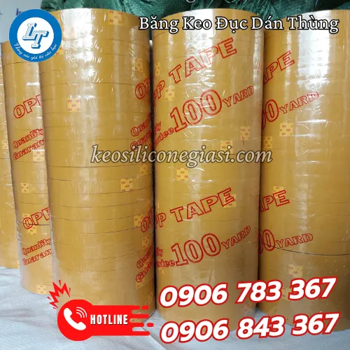 Băng keo đục 100 yard (~90m): phù hợp với cửa hàng, siêu thị hoặc shop online có nhu cầu đóng gói vừa phải, dễ sử dụng và tiện lợi.