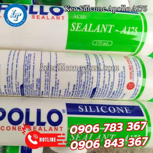Keo apollo silicone sealant A175: là chất tám trét không bị mất màu, rạn nứt khi sử dụng ngoài trời, có khả năng kết dính hầu hết các chất liệu khi được sử lý thêm một lớp sơn lót thích hợp.