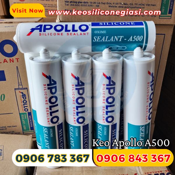 Keo silicone A500: là chất trám trét, kết dính gốc silicone một thành phần lưu hóa trung tính, lưu hóa khi tiếp súc với không khí và tạo thành một dạng chất dẻo như cao su. Keo apollo silicone A500 bề bỉ, chống chịu được thời tiết khắc nghiệt. Phù hợp với việc sử dụng trong không gian kín.