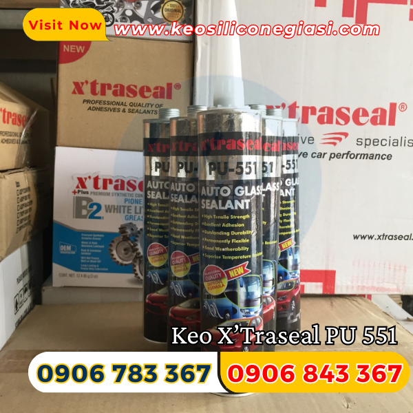 Keo xtraseal pu551: à loại keo gốc PU có độ nhớt cao, độ đàn hồi tốt và có độ bám dính tuyệt vời với kính-kim loại, nó thường được dùng cho liên kết kính chắn gió trong công nghiệp ôtô, xe buýt, xe tải....Xuất sứ từ Malysia