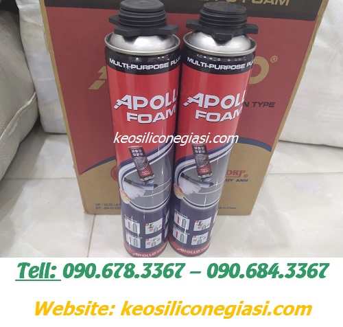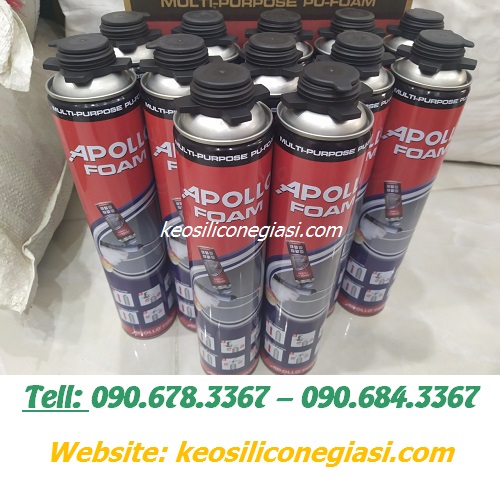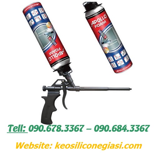- Keo APOLLO FOAM (bịt, trám trít khe hở, lỗ hổng, vết nứt ở các cửa sổ, cửa trượt, ống dẫn điện, ống thông hơi, nhằm chống va đập, chống ồn, cách âm)