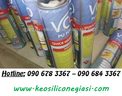 - Keo xịt bọt VCO PU FOAM (bịt, trám trít khe hở, lỗ hổng, vết nứt ở các cửa sổ, cửa trượt, ống dẫn điện, ống thông hơi, nhằm chống va đập, chống ồn, cách âm)