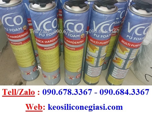 - Keo xịt bọt VCO PU FOAM ( bịt, trám trít khe hở, lỗ hổng, vết nứt ở các cửa sổ, cửa trượt, ống dẫn điện, ống thông hơi, nhằm chống va đập, chống ồn, cách âm)