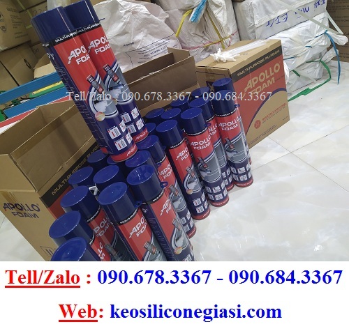 - Keo APOLLO FOAM (bịt, trám trít khe hở, lỗ hổng, vết nứt ở các cửa sổ, cửa trượt, ống dẫn điện, ống thông hơi, nhằm chống va đập, chống ồn, cách âm)