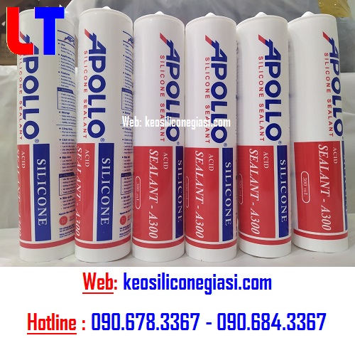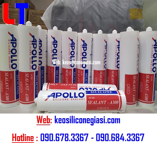 - Keo silicone apollo A300: Là chất trám trét, kết dính gốc silicone (Silicone Sealant) cao cấp một thành phần lưu hóa axít, độ đàn hồi cao.