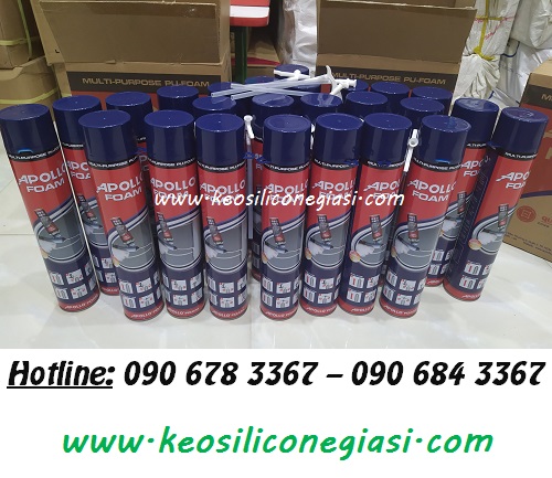 - Keo APOLLO FOAM (bịt, trám trít khe hở, lỗ hổng, vết nứt ở các cửa sổ, cửa trượt, ống dẫn điện, ống thông hơi, nhằm chống va đập, chống ồn, cách âm)