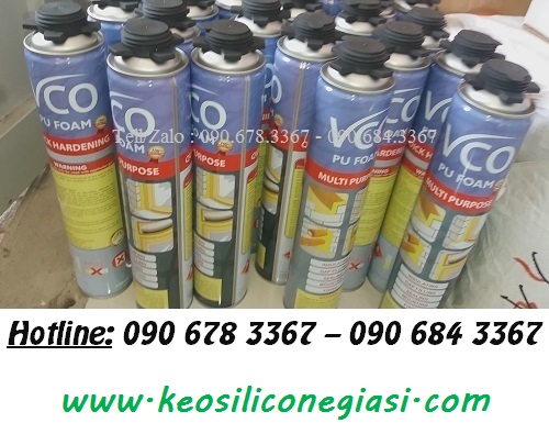 - Keo xịt bọt VCO PU FOAM (bịt, trám trít khe hở, lỗ hổng, vết nứt ở các cửa sổ, cửa trượt, ống dẫn điện, ống thông hơi, nhằm chống va đập, chống ồn, cách âm)